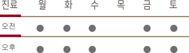 토요일 AM 9:00 ~ PM 2:00 (점심시간 없이 진료)