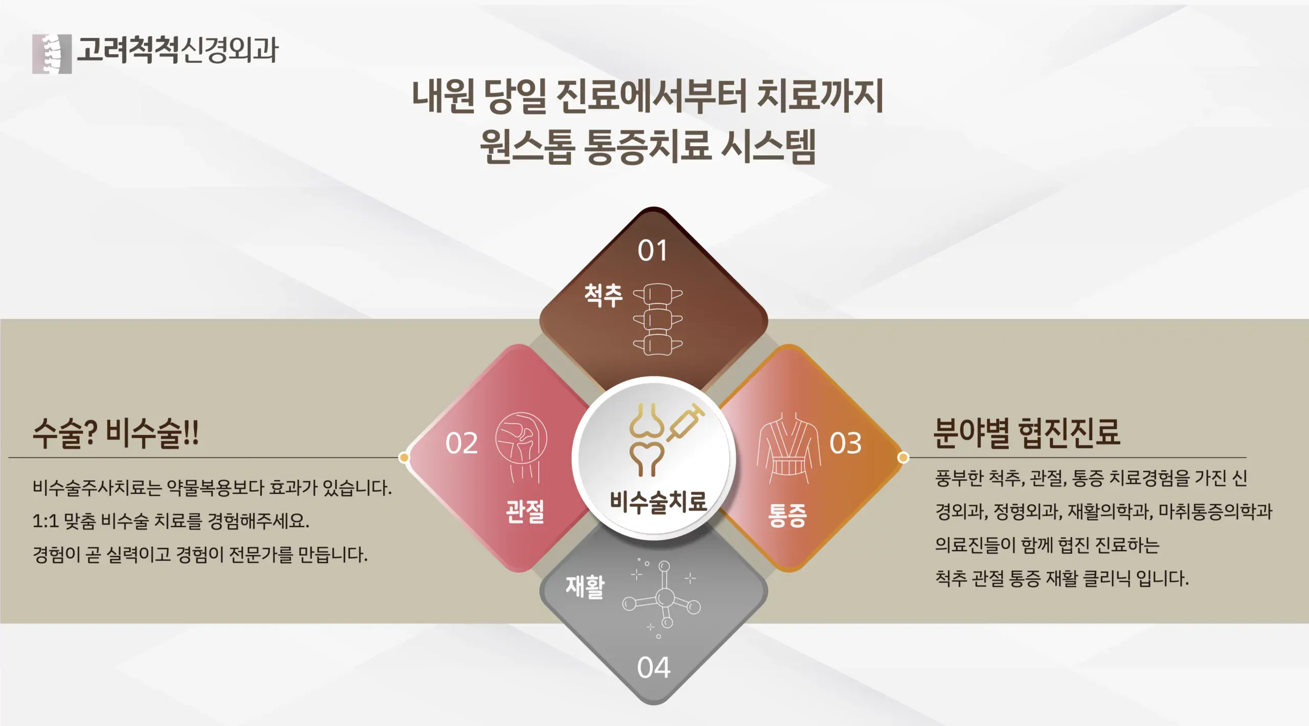 환자를 가족처럼 치료하는 고려척척신경외과입니다.